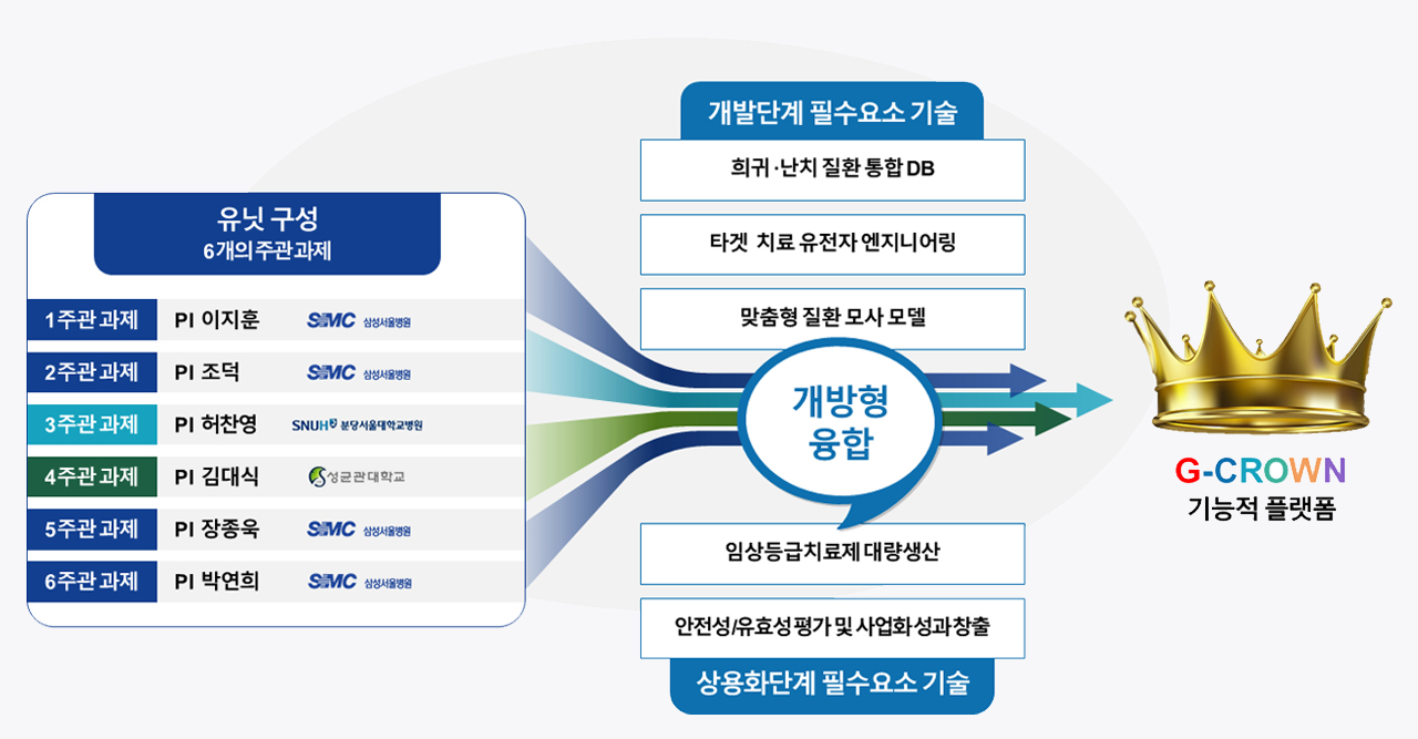 - 과제명: 희귀난치 질환 첨단 유전자 치료제 개발을 위한 개방형 G-CROWN 플랫폼 구축