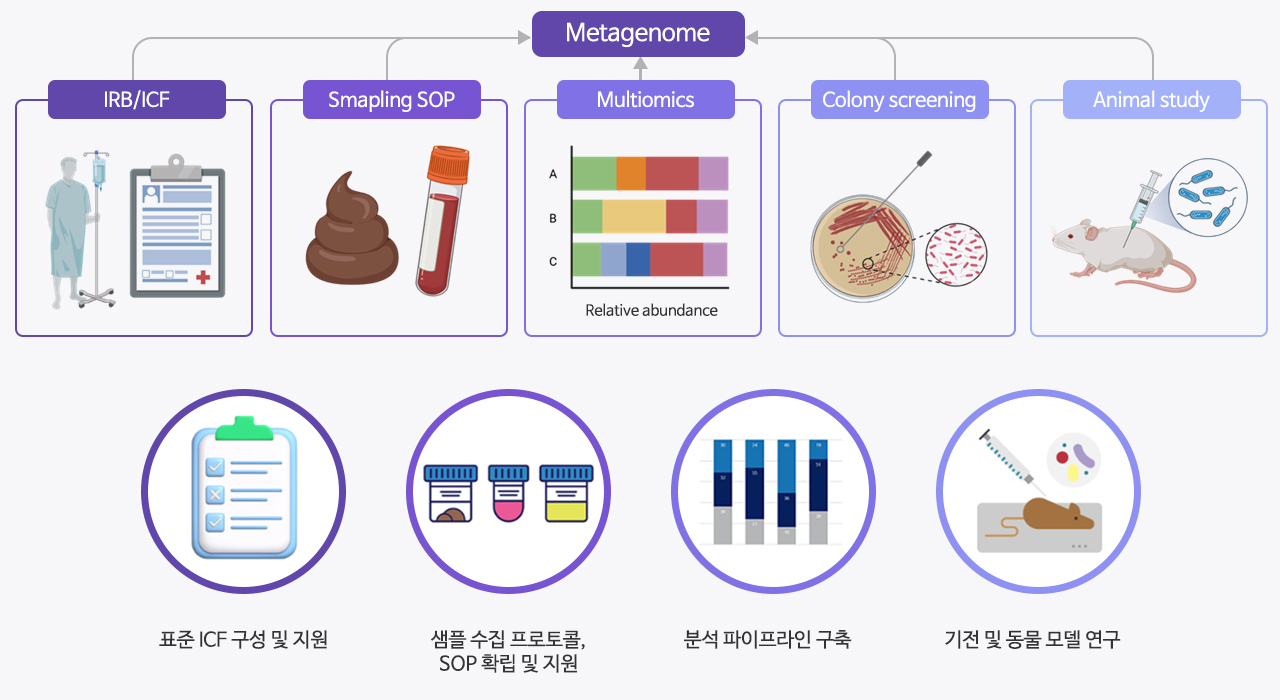 - 마이크로바이옴과 다양한 질환과의 연관성 및 약물치료 반응성 연구 지원