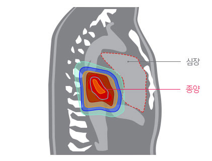 양성자치료의 장점은 심장 및 폐의 방사선량을 줄일 수 있다는 것입니다. 최근 식도암의 방사선치료에 있어 심장 부작용에 대한 관심이 커지고 있습니다. 방사선치료를 시행할 때 심장에 조사되는 방사선량이 많을 수록 수년 후에 심장 관련 부작용이 발생할 가능성이 커지게 됩니다. 양성자치료는 심장에 전달되는 방사선량을 최소화하여, 심장 부작용을 최소화 할 수 있다는 장점이 있습니다.