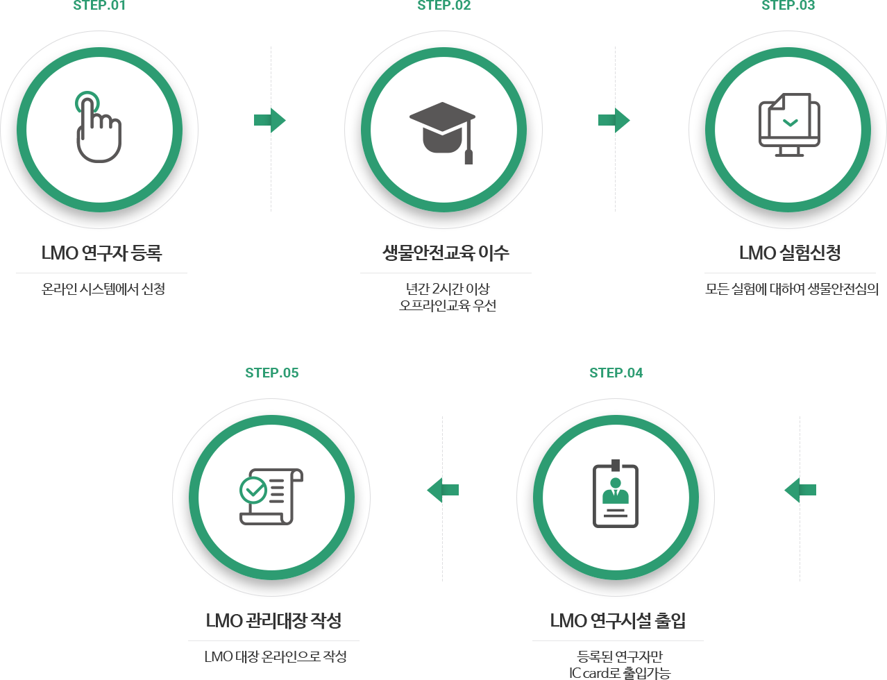 - 안전한 환경에서 연구를 수행할 수 있도록 LMO 등록 체계를 구축, 운영