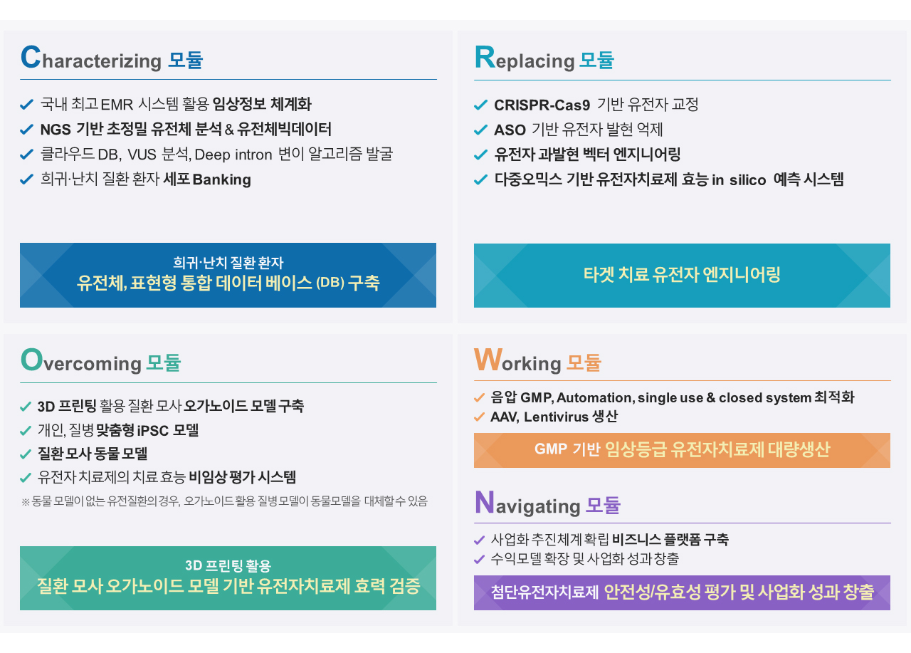 - 과제명: 희귀난치 질환 첨단 유전자 치료제 개발을 위한 개방형 G-CROWN 플랫폼 구축