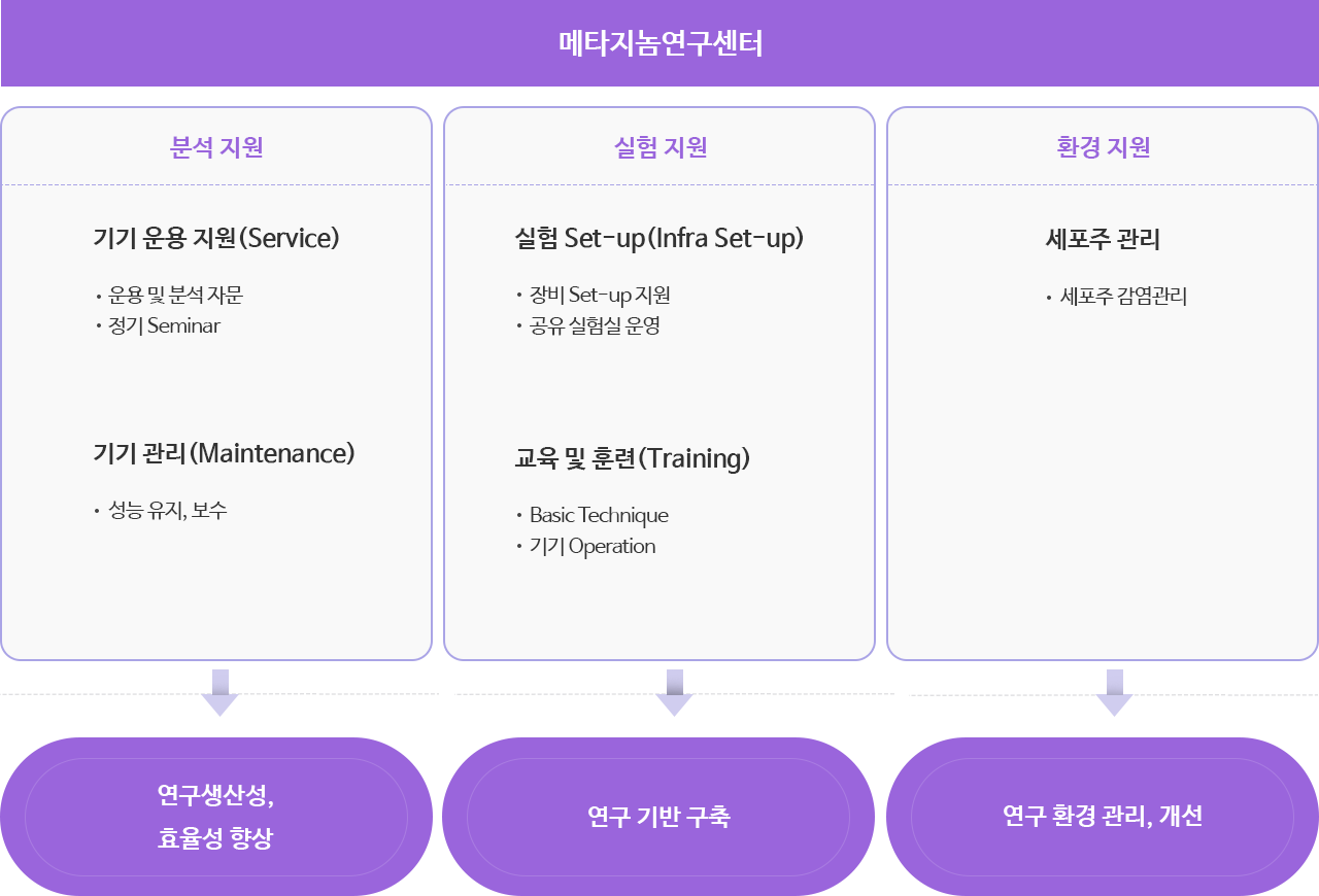 - 공동기기 관리지원 : 고품질 분석 결과를 위한 성능 유지관리, AS 관리